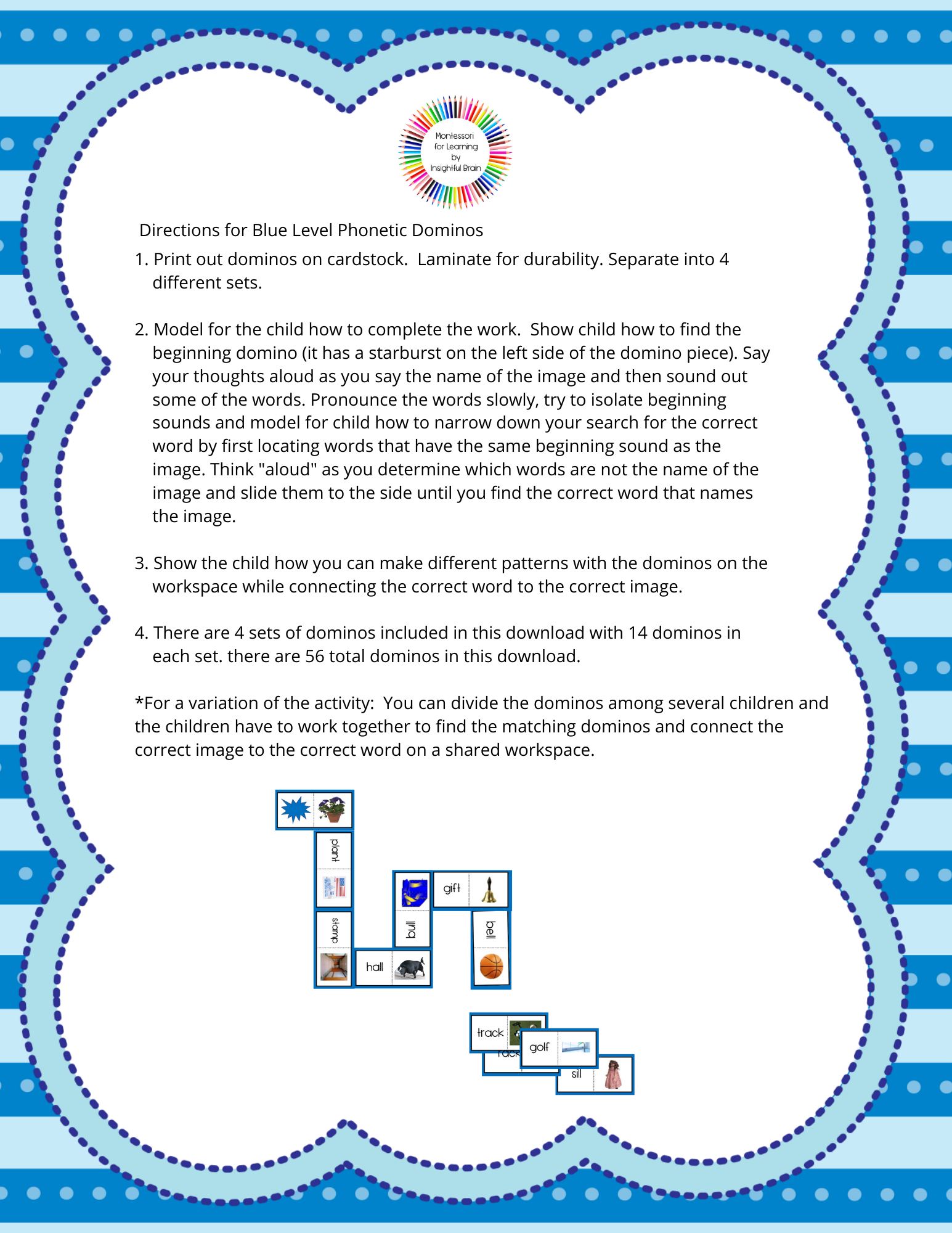These Montessori-inspired Beginning Level Dominos will quickly build your child's foundational reading skills. These dominos use four to six letter phonetic words to allow child to expand their early reading skills.