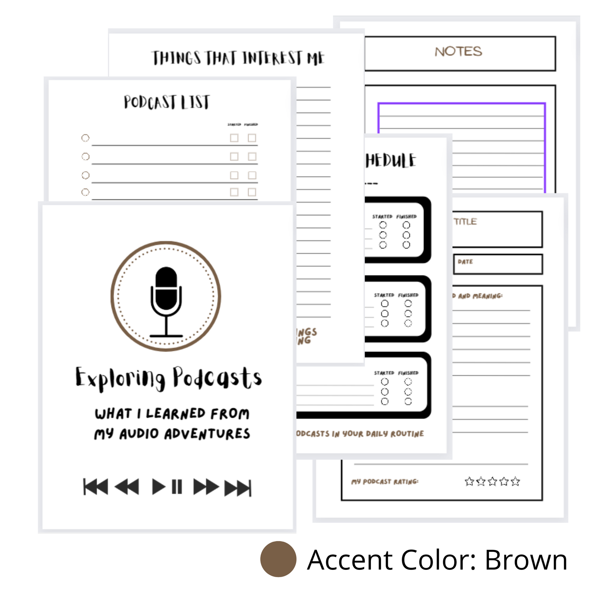 THE VIDEO PREVIEW EXAMPLE IS USING THE JOURNAL WITH PURPLE ACCENT (THIS IS JUST TO REVIEW THE PAGES INCLUDED IN THE JOURNAL. YOU ARE PURCHASING THE PODCAST JOURNAL WITH THE Â BROWN ACCENT.
