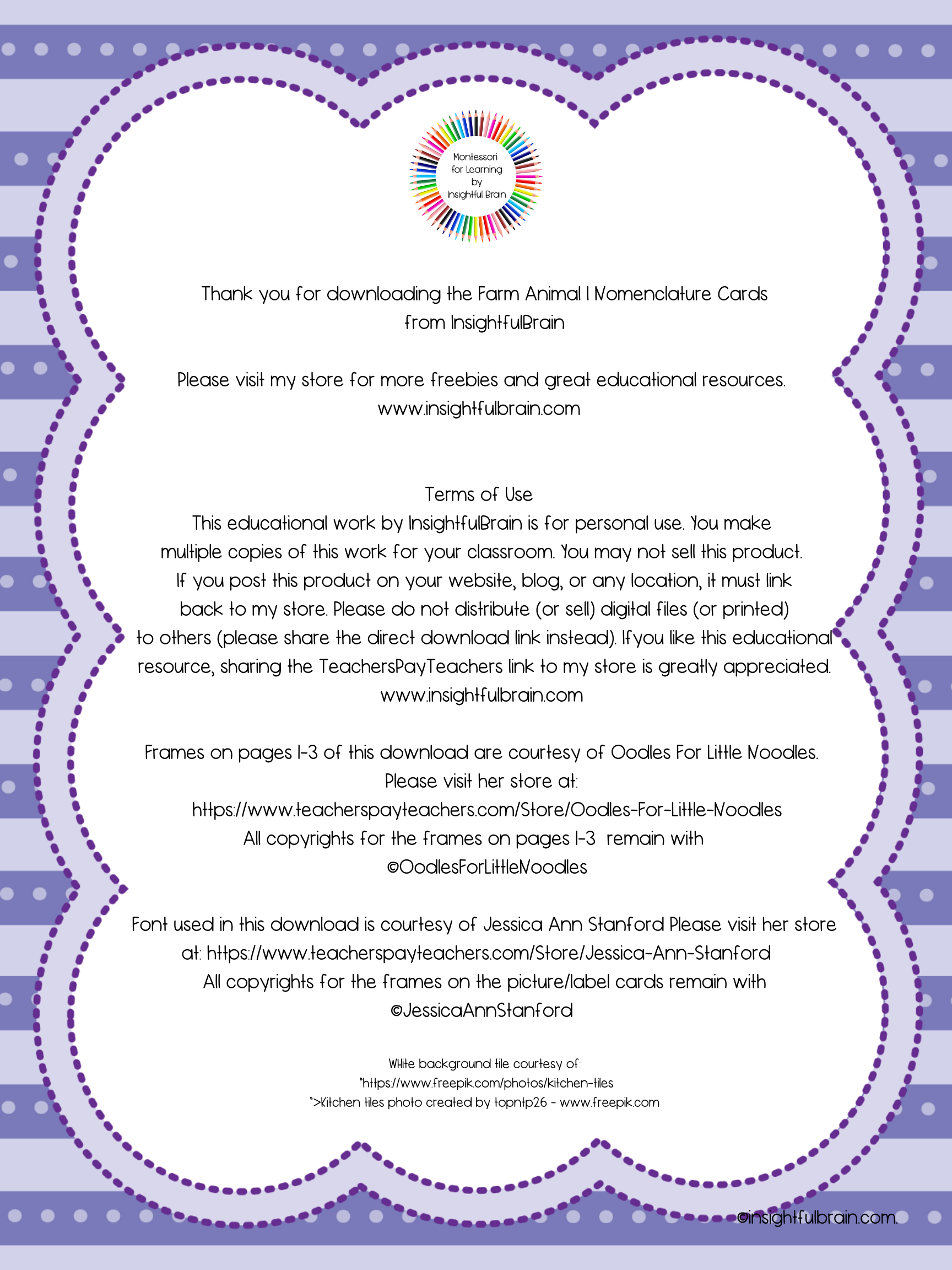 The objective of this first set is for your child to match the name of the farm animall with the animal image to practice and learn farm animal nomenclature. These cards are perfect for Montessori, homeschool and traditional classrooms for pre-reading, kindergarten, preschool or ESL classrooms.