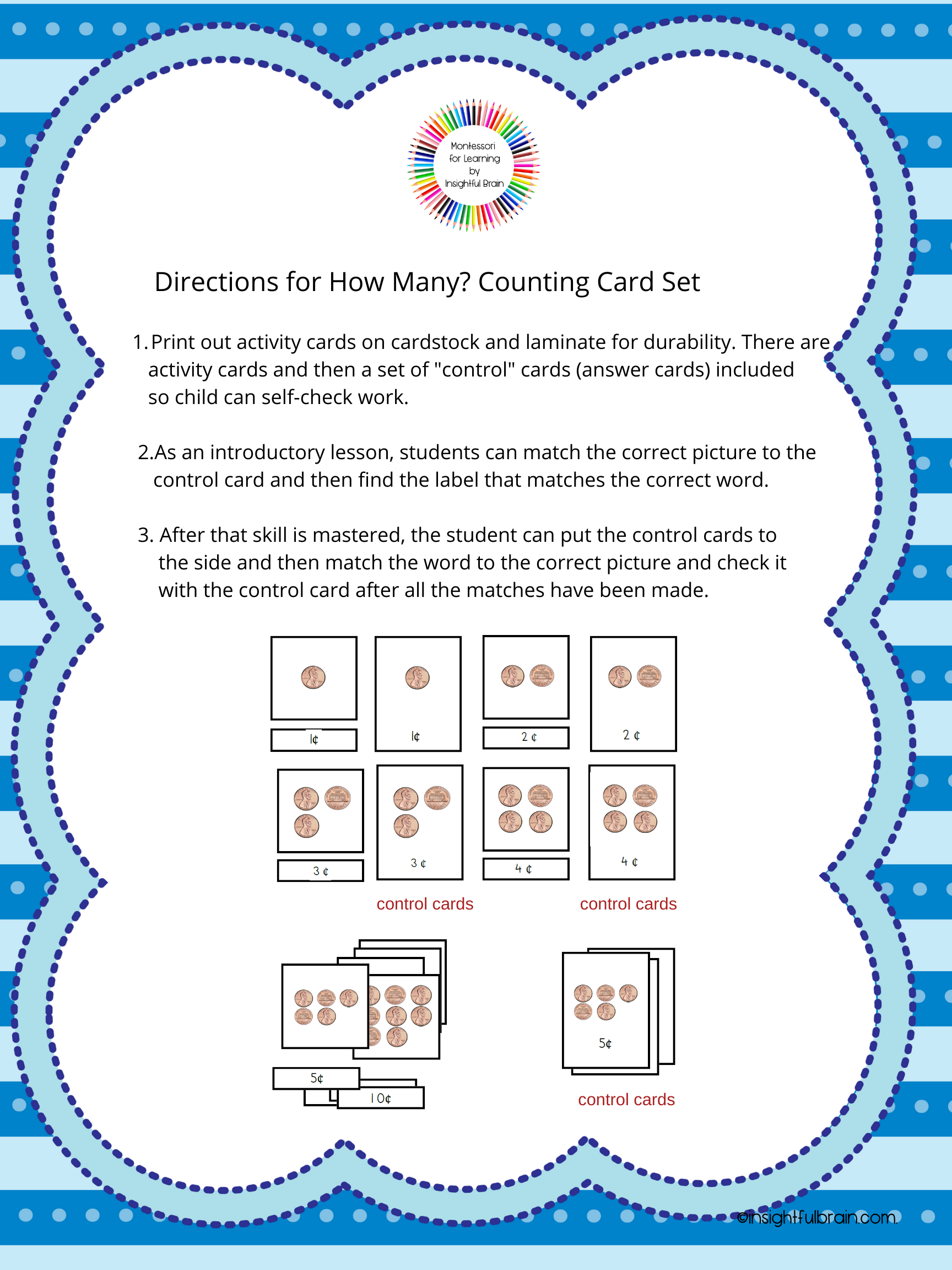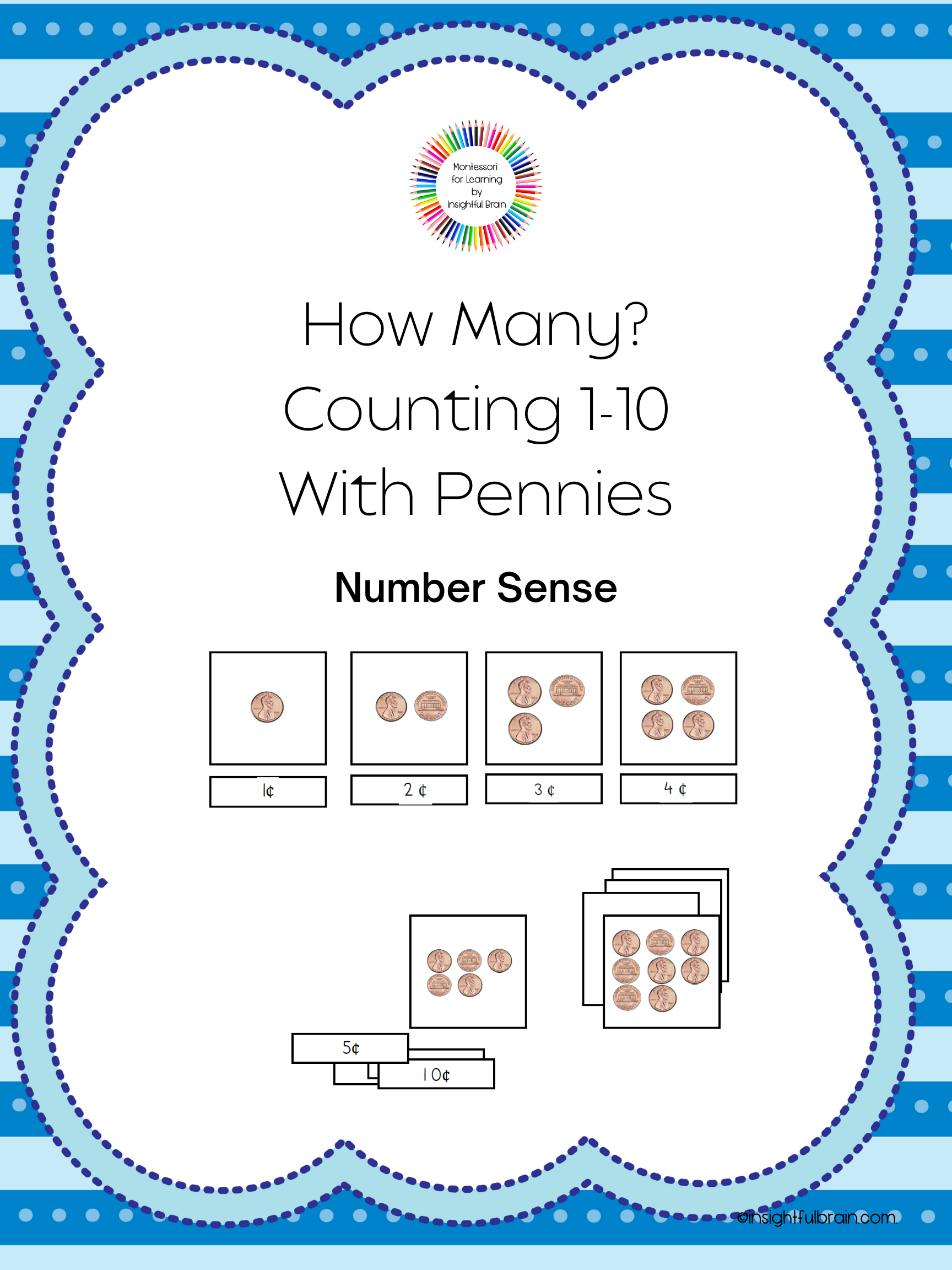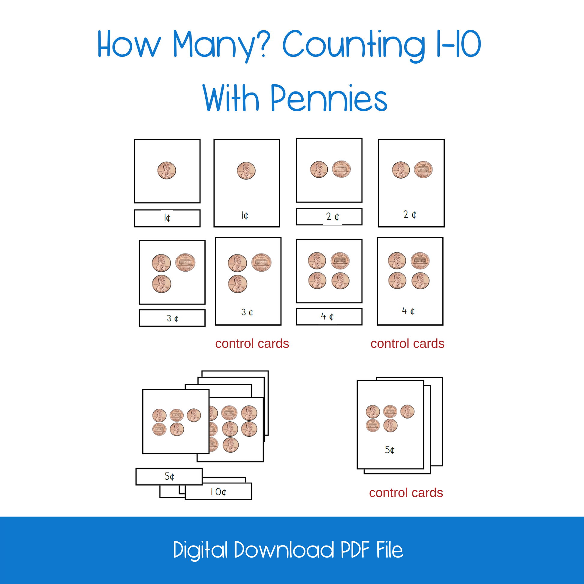 Children learn essential counting skills (1-10) while learning how to count money with this fun, Printable" How Many? With Pennies" counting card set.