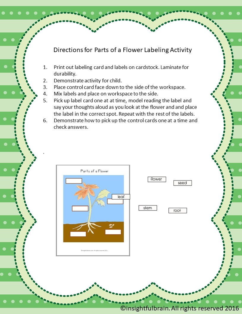 Go on a nature walk outside and look at the lovely flowers blooming around the neighborhood or park. Point them out and “wonder aloud” about the different parts of the flower. When you get back, have this activity ready for your child to show what they learned on your walk!!!