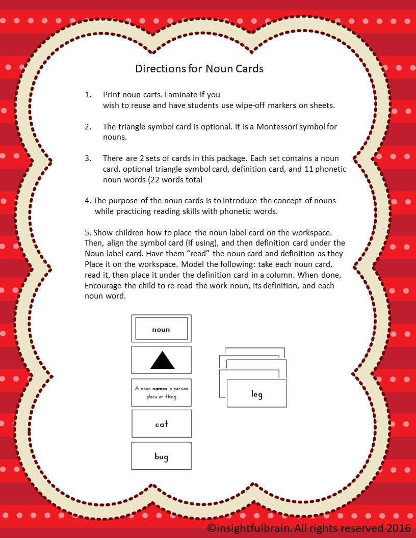 - 2 sets of noun activity cards (11 noun word cards in each set -- 22 noun word cards total)