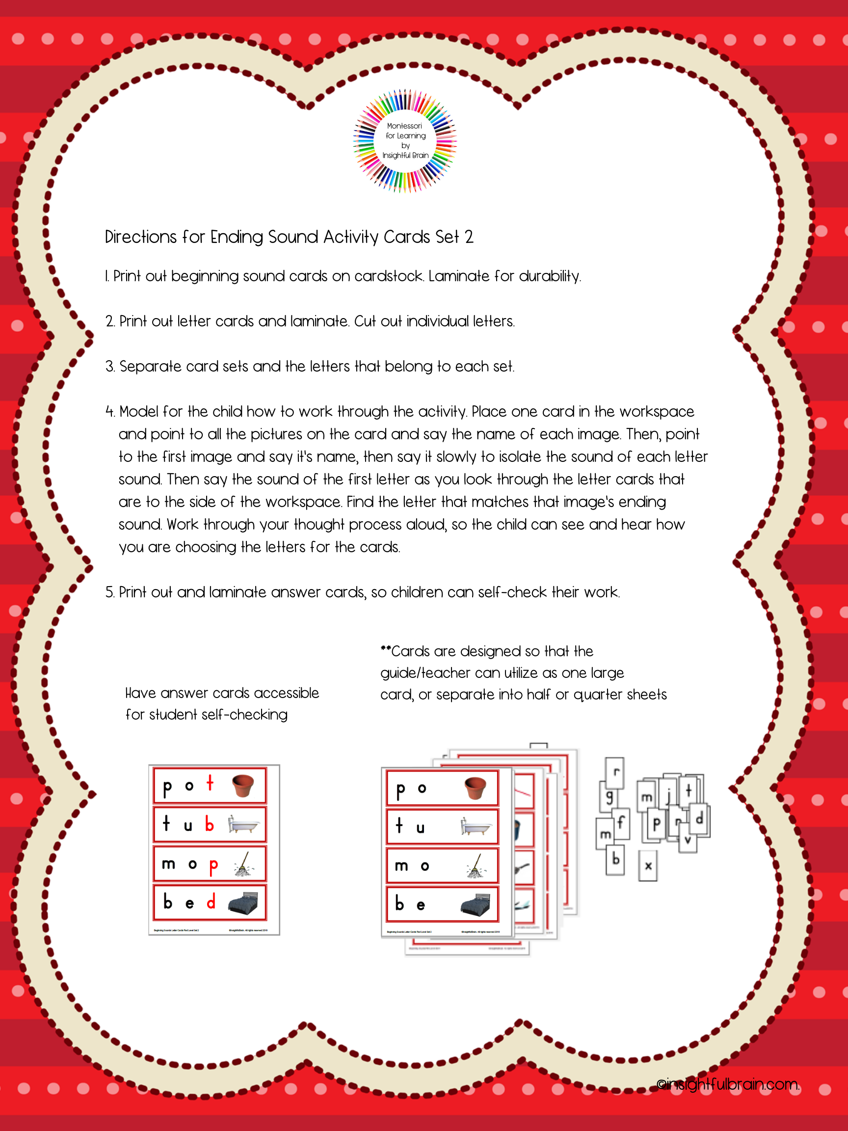 *Once a child has mastered the Ending Sound Activity Card Set 1 and Set 2, you can mix and match the cards between the sets to reinforce reading skills (Set 1 is sold separately, but is part of the subscription access plan if you are a monthly subscriber).