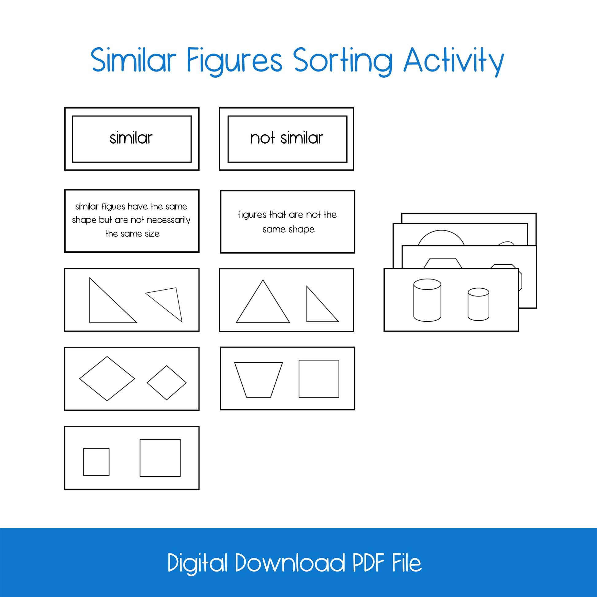Children learn critical thinking skills and also geometry terms with the Similar Figures Sorting Cards Activity.