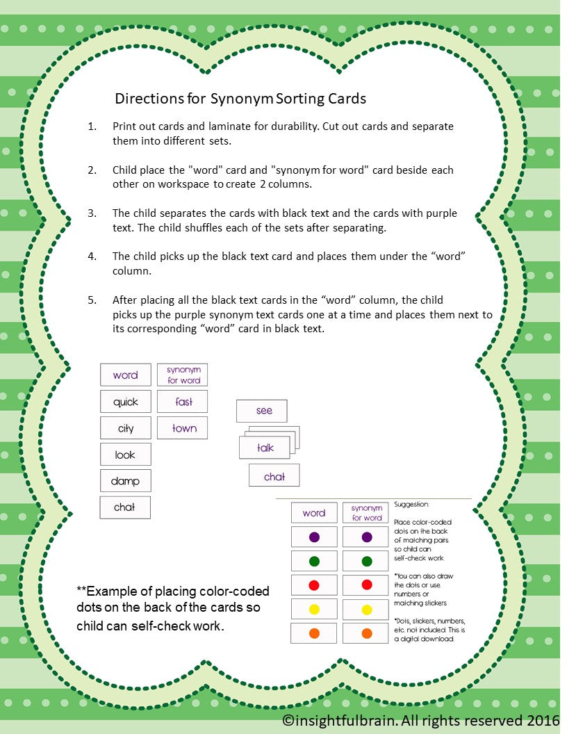 11 sets of synonym cards (20 cards in each set plus the 2 heading cards) = 220 total synonym cards in this purchase.