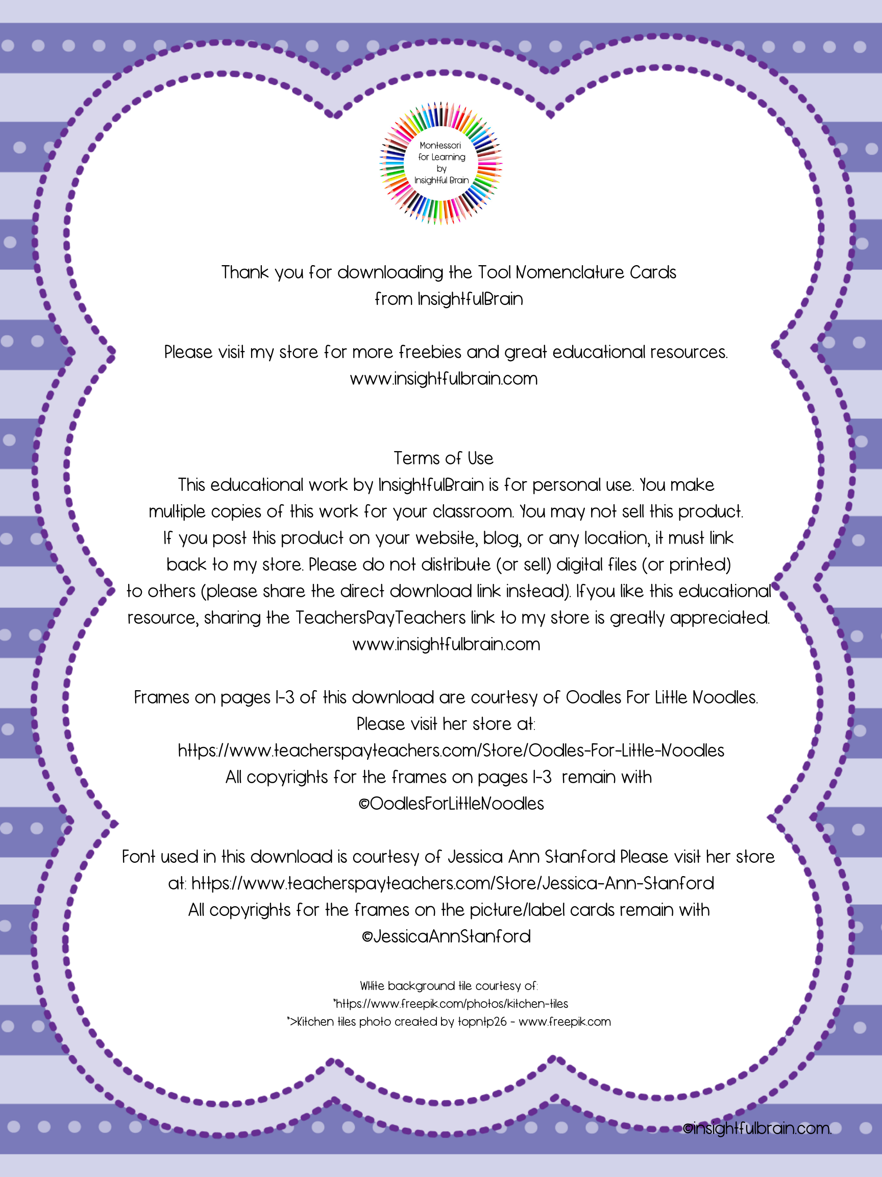 The objective of this first set is for your child to match the name of the tool with the tool image to practice and learn tool nomenclature. These cards are perfect for Montessori, homeschool and traditional classrooms for pre-reading, kindergarten, preschool or ESL classrooms.