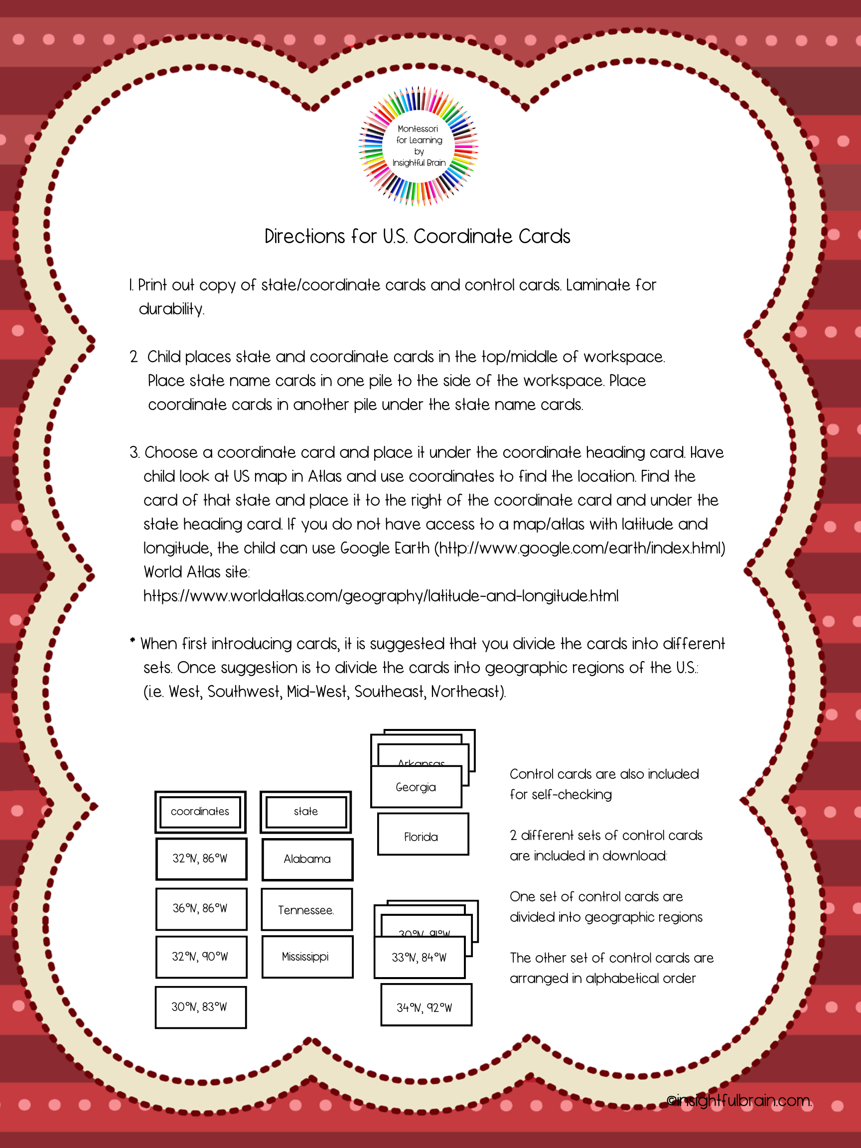 Map skills are becoming extinct these days! Teach your children how to locate geographical locations with the US Coordinates Command Cards.