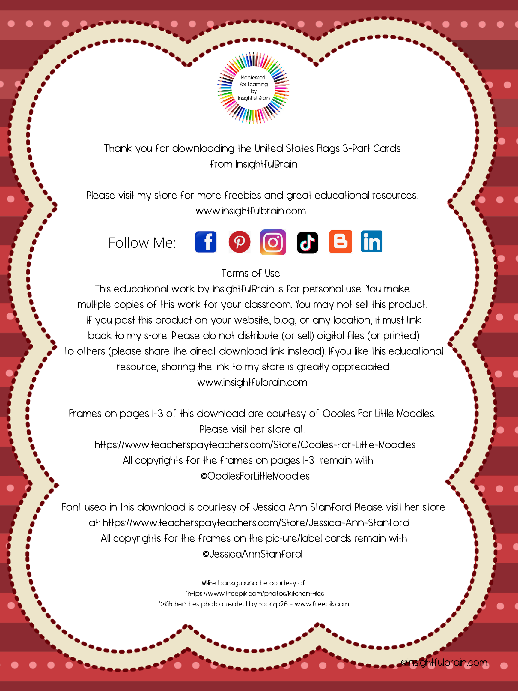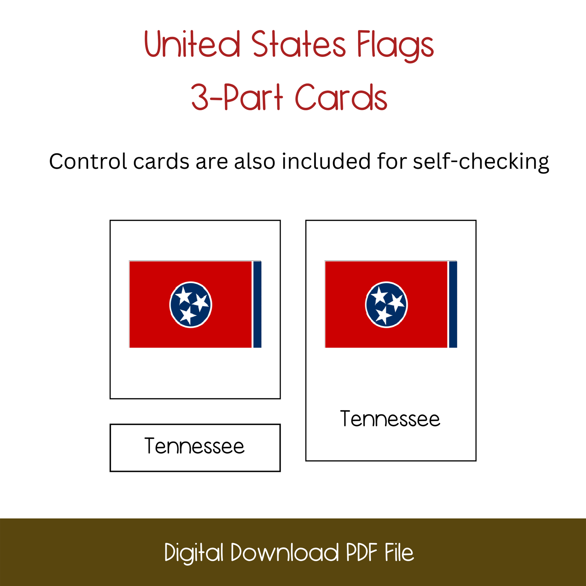 The United States Flag 3-Part Cards will spark curiosity to learn more about each US state as the child learns to identify each unique, individual state flag.