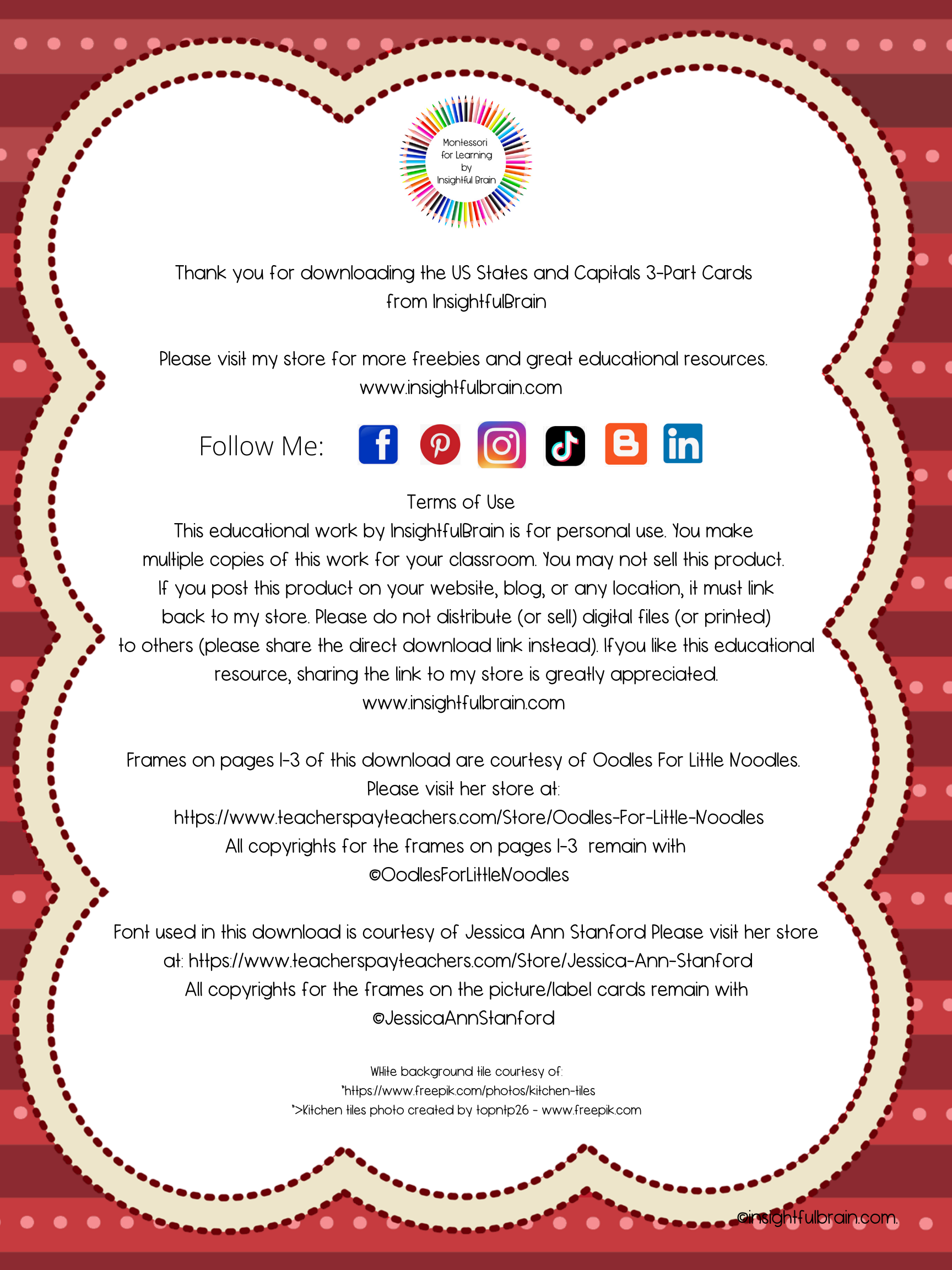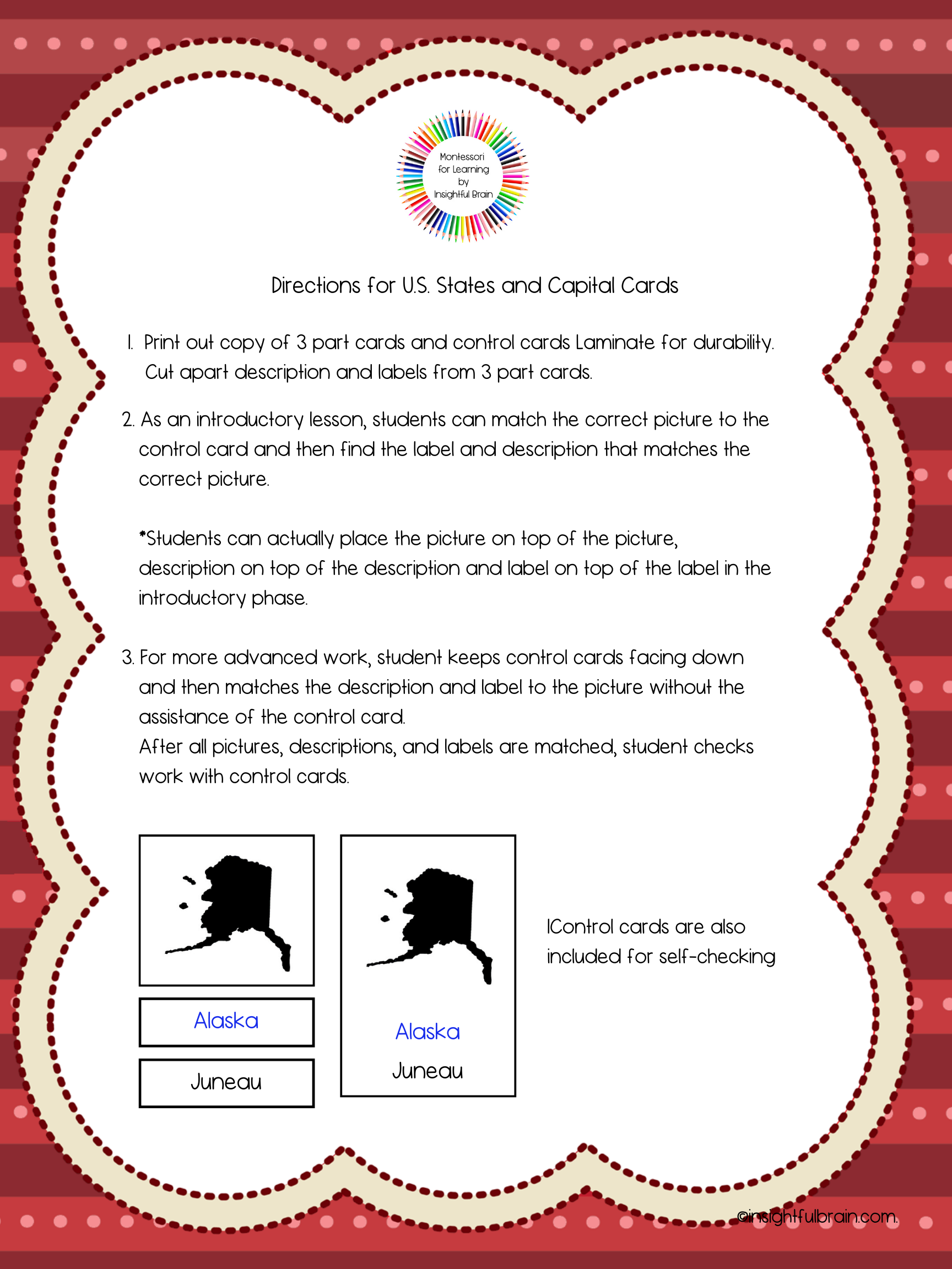 Children learn more about the US and geography with the US States and Capitals 3-Part Card Set